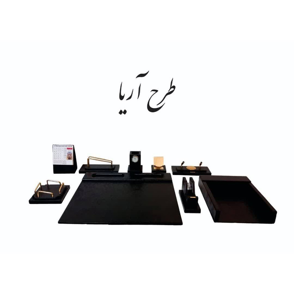 ست رومیزی مدیریتی 9 تکه آریا - شامل جای قلم و خودکار ، ساعت ، جامدادی ، جاچسبی ، پایه موبایل ، زیردستی ، کازیو ، جای تقویم رومیزی ، جای کارتی ، جای برگه یادداشت - تحویل این کالا حداقل 7 الی 15 روز کاری زمان نیاز دارد.