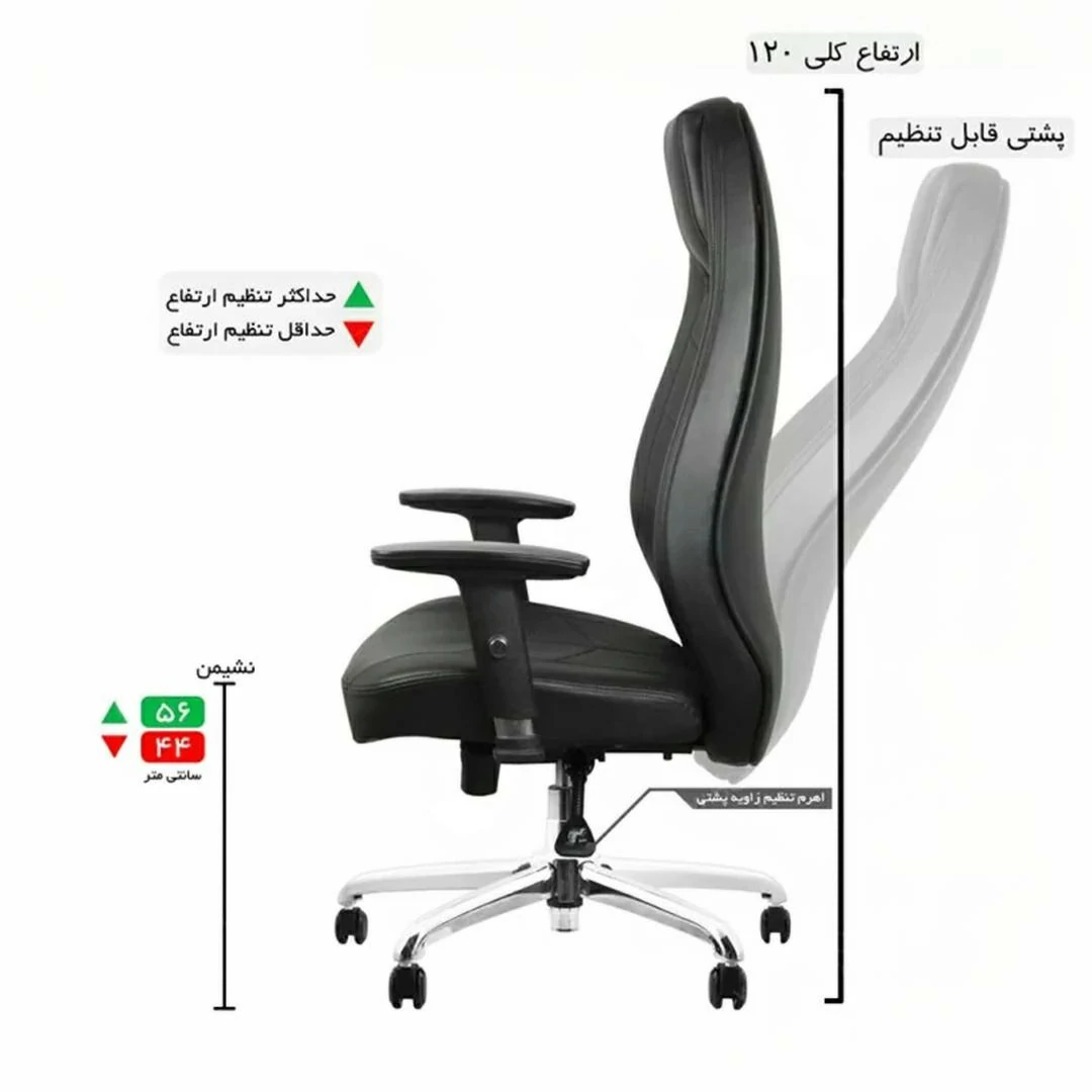 جک باکیفیت و High Pressure این محصول به رنگ کروم به همراه پایه کروم ضخیم که در این مدل استفاده شده همچنین کلاف چوب 10 لایه راش به نور خورشید به همراه نخ ابریشم با کیفیت بالاین صندلی قابلیت تحمل وزن بالا را میدهد.