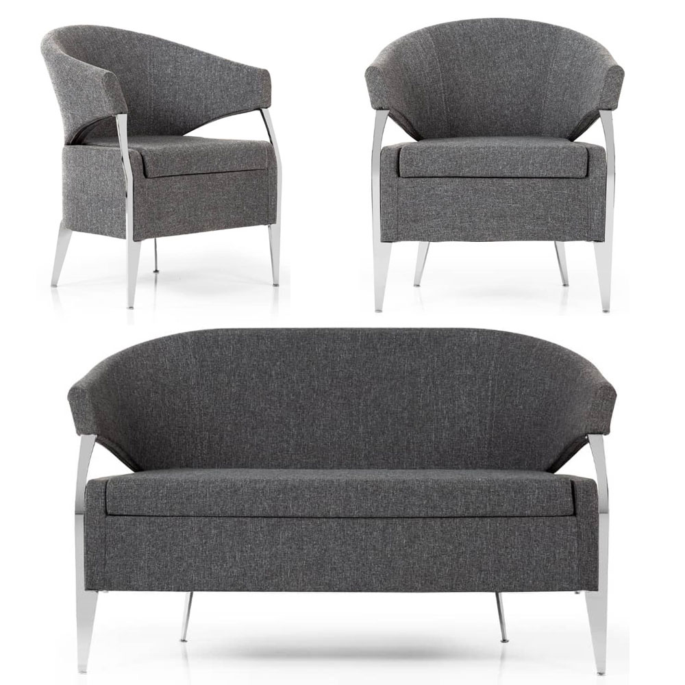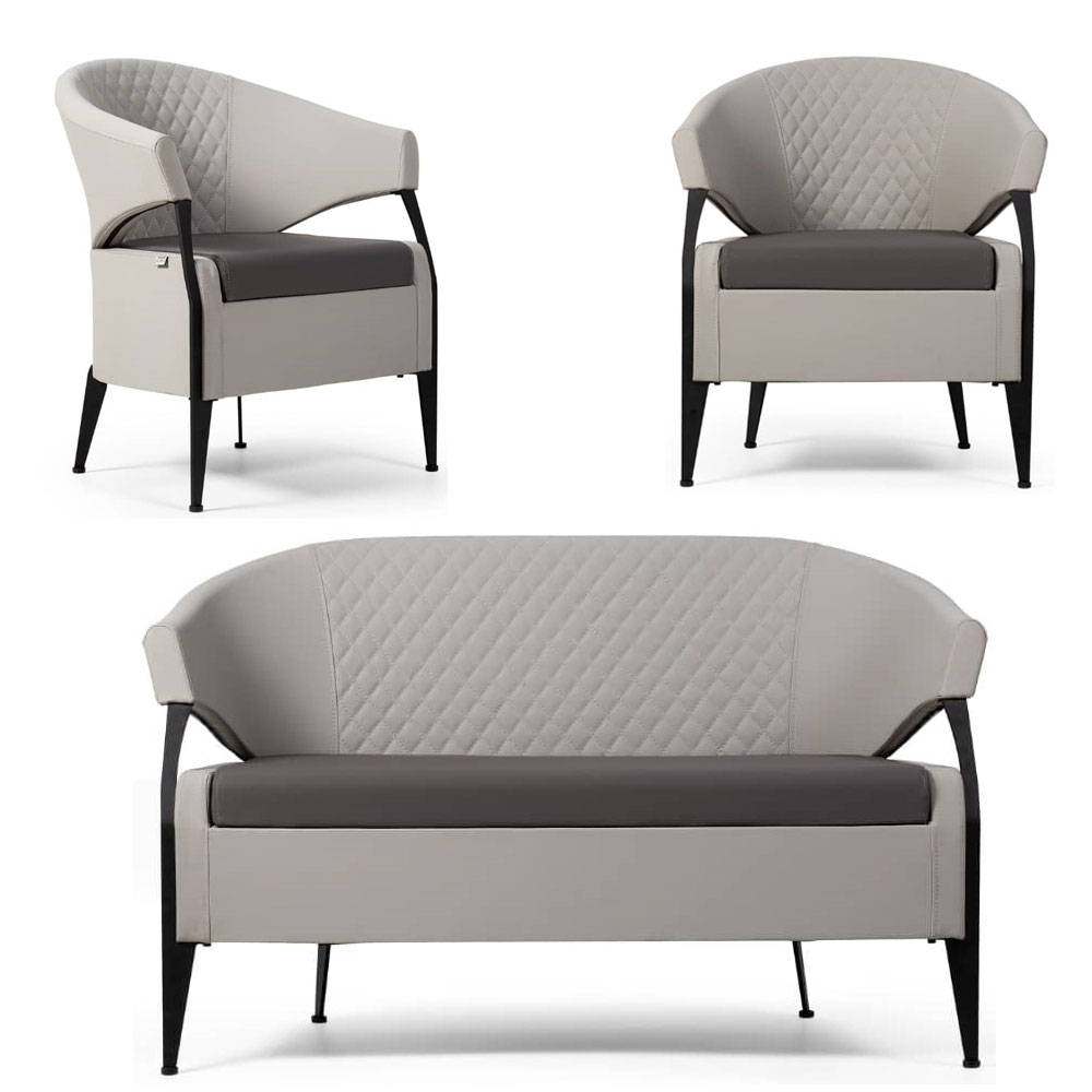 مبل نیم ست الکا Elkaاستراکچر تمام فلز - فوم سرد تزریقی - روکش چرم اسپرسو پارس یا روکش پارچه - پایه های فلزی - روکش استاتیک کوره ای - امکان تغییر رنگ پایه کروم یا فورتیک