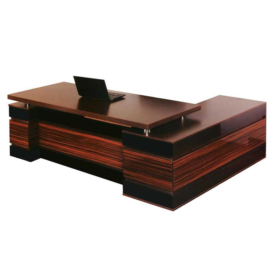 میز مدیریت مدل صدفی ساخته شده از چوب ام دی اف و ورق ملامینه ضدخش دارای طراحی مدرن و خاص با ال کنار میز به همراه فایل سه کشو با متریال با کیفیت می باشد.