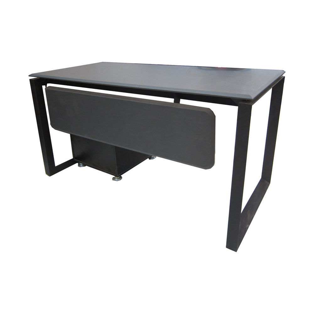 میز کارمندی مدرن پایه فلزی GF116K برای فضای اداری مینیمال و مدرن با پایه میز قوطی سنگین رنگ استاتیک کوره ای و ابعاد 150×65 سانتی متر دارای فایل متحرک دارای 3 کشو، با قفل مرکزی می باشد.