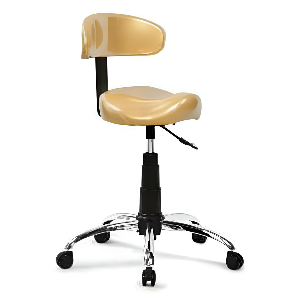 صندلی تابوره گردان مدل زین دوچرخهای دارای جک گازی 12 سانتیمتری با پایه پنج پر استیل دارای چرخ ژلهای و پشتی و نشیمن فوم با وزن 7 کیلوگرم میباشد.