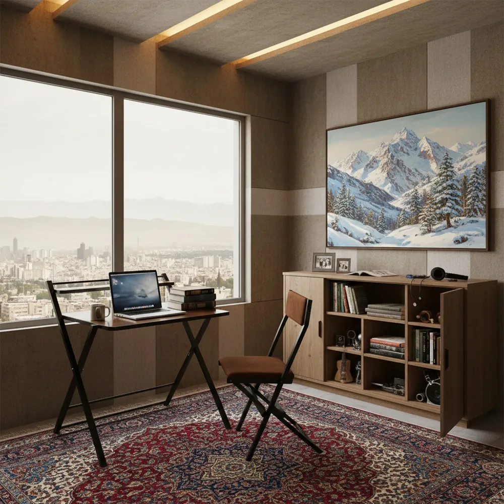 میز تحریر دانشجویی با صندلی پارچهای (قهوهای تیره)
