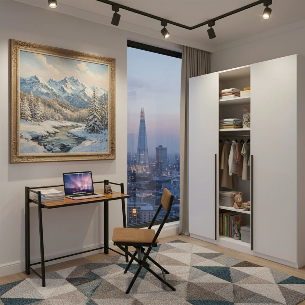 میز تحریر دانشجویی پنجرهای با صندلی پارچهای (قهوهای متوسط)