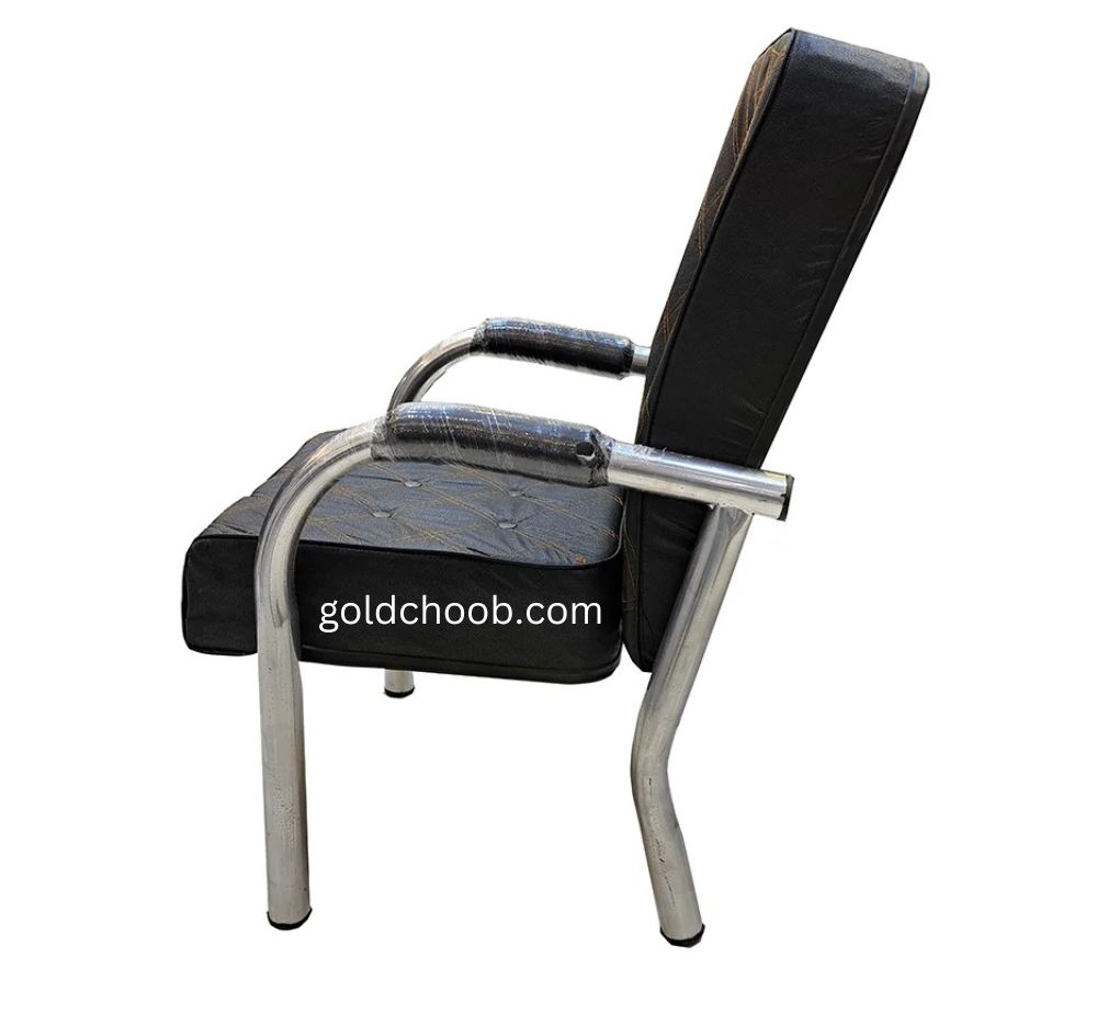این صندلی انتظار مبلی دارای پایه های فلزی و پوشانده از رنگ مشکی و یا نقره ای الکترواستاتیک یا کوره ای بوده و در زیر پایه ها ترمز پلاستیکی از سر خوردن و خراشیدن سطح زیر صندلی جلوگیری می نماید.